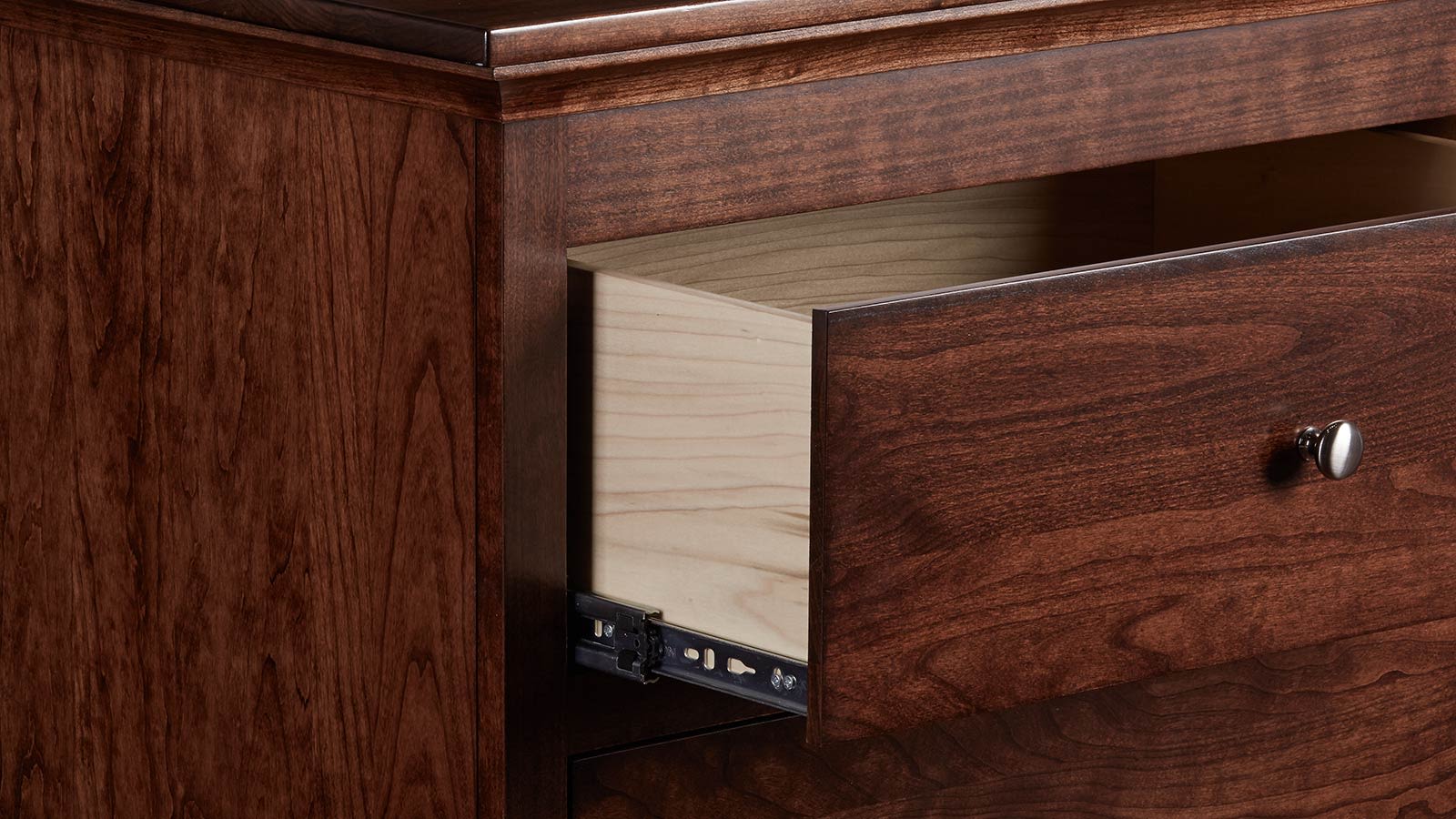 - Six fully finished, solid maple, dovetailed drawers, set on ball bearing, full-extension slides, keep all your essentials within reach.