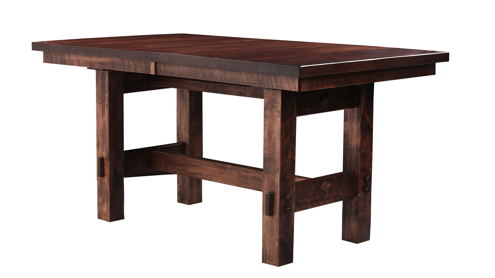 The Houston Maple Trestle Pub Height Dining Table is inspired by the country farmhouse, where furniture is simple in design and meant to be used and loved by the family. The table is built using sustainably grown solid rustic maple wood. The top and legs are stained a incredible almond brown which makes the grain of the solid maple wood seem to come alive. The base which utilizes a 4 leg modified trestle configuration is stained the same beautiful almond brown, complementing the top and enhancing the farmhouse industrial aesthetic. Run your hand along the surface and feel the artisan sanded top while enjoying the thickness and heft of the table. Obviously, this table was meant to be used, to be loved, to be the beating heart of your home. If you love the look, feel, and organic essence of solid wood then welcome this table into your home TODAY, words cannot truly express how lovely this table is in person.