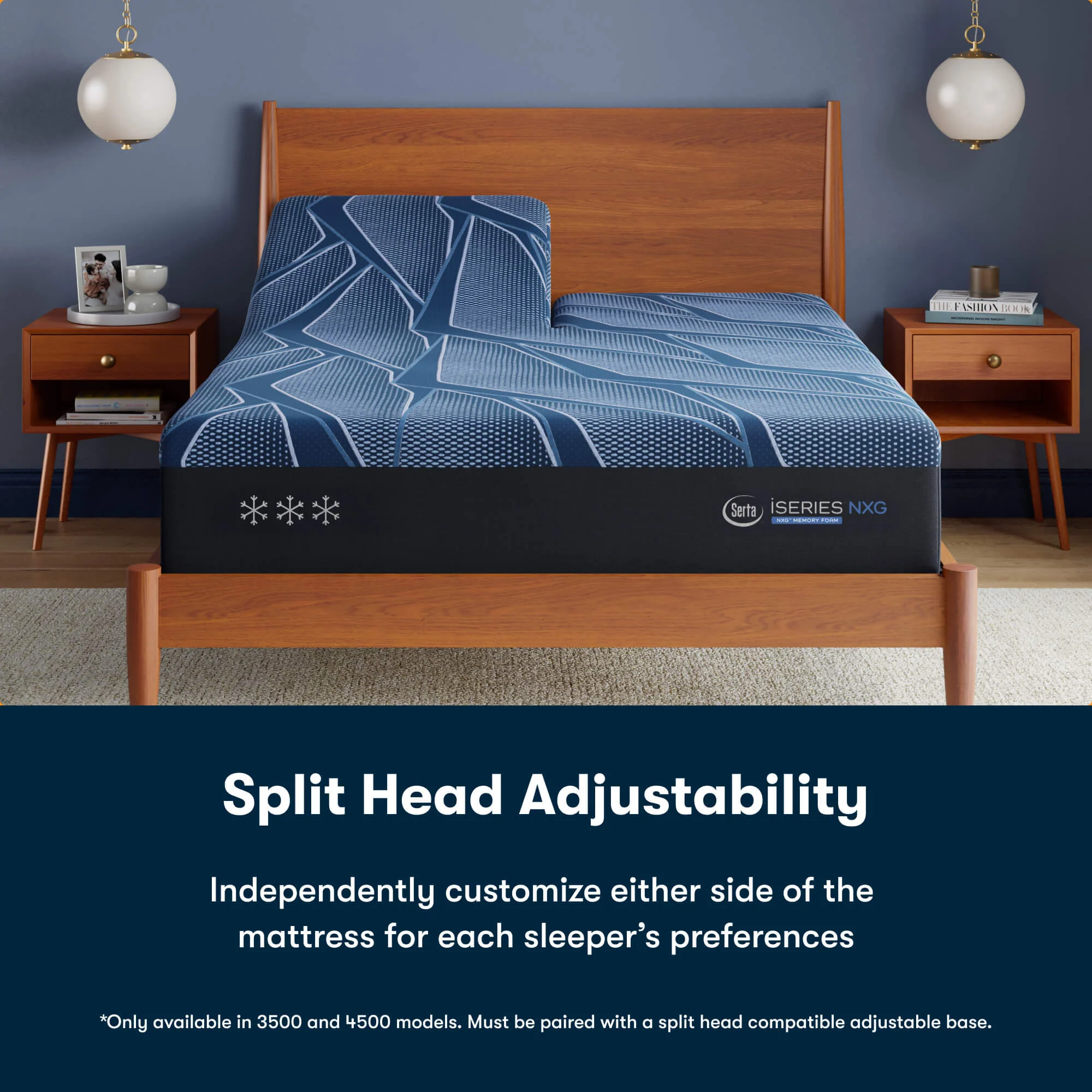Serta iSeries NXG 3500 Firm Hybrid Split-Head Queen Mattress with Flex Adjustable Base — Dual Comfort, Cooling Performance & Firm Support for Couples